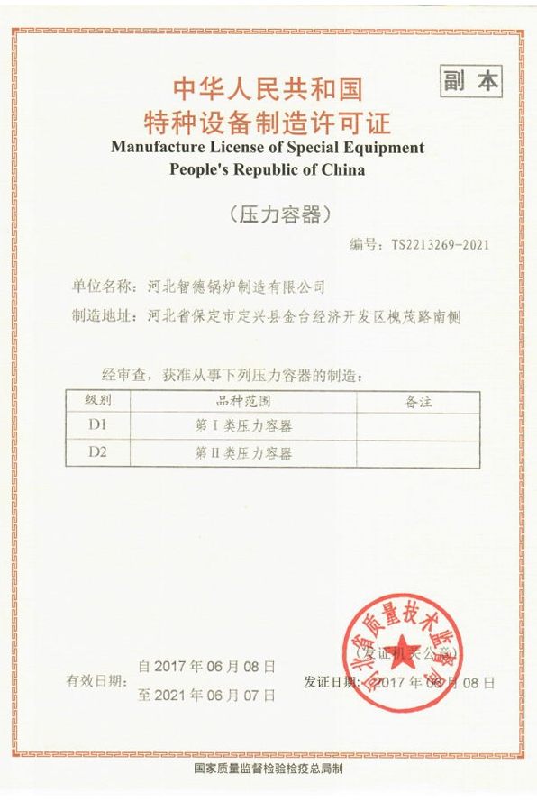 • 特種設(shè)備制造許可證